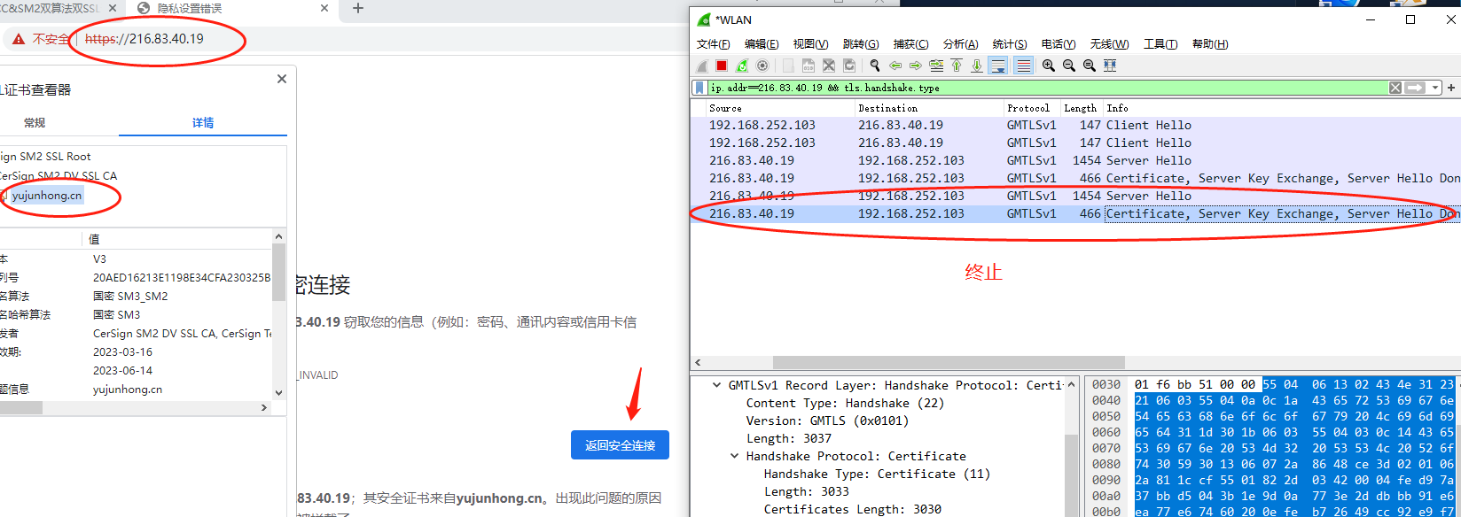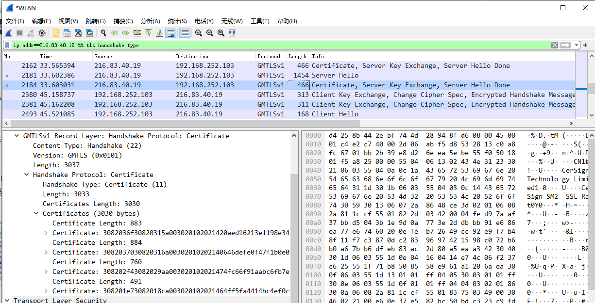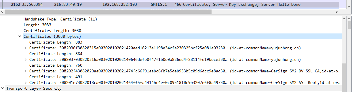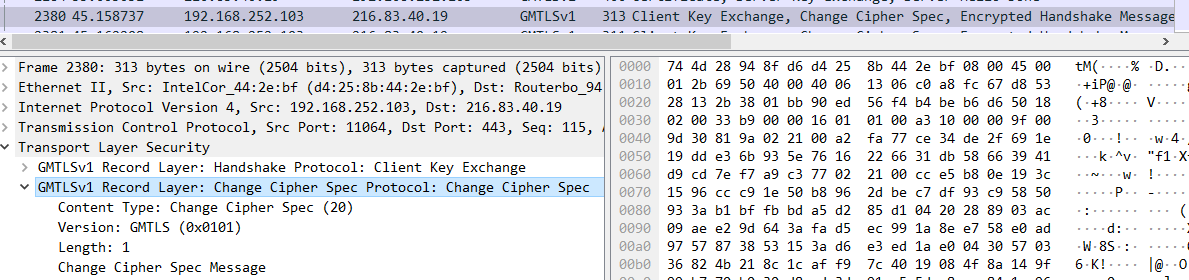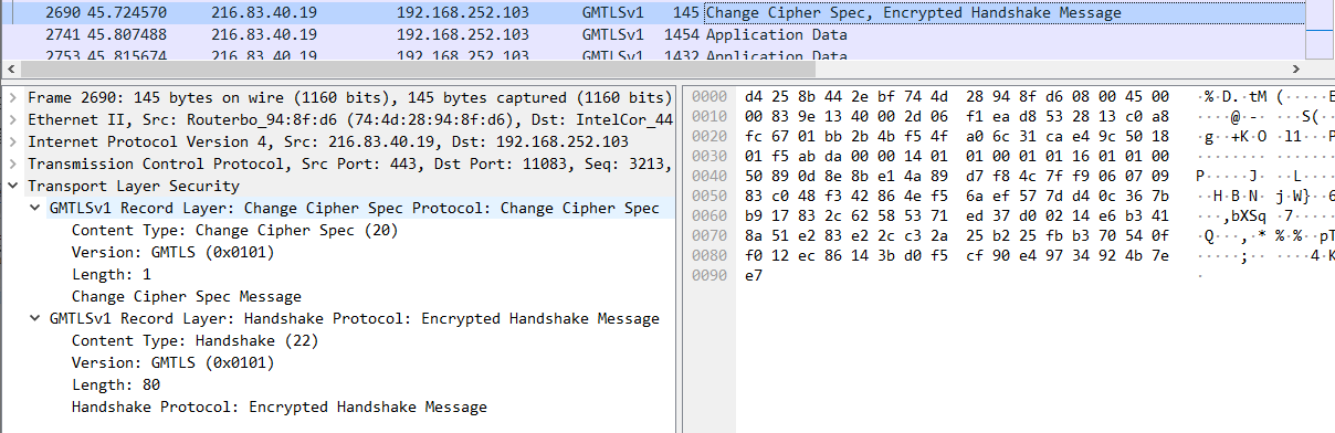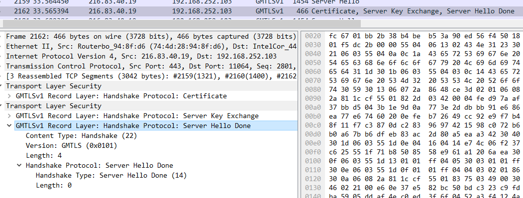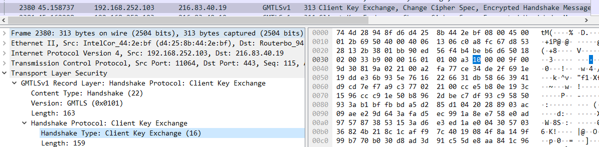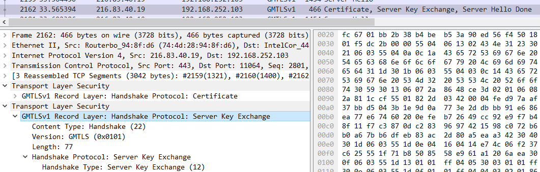 使用wireshark 4.0以上抓包可观察GMSSL协议。