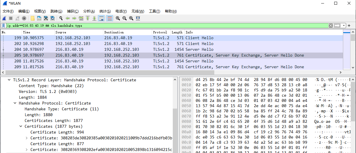 消息3:服务器端向客户端发送Certificate消息。