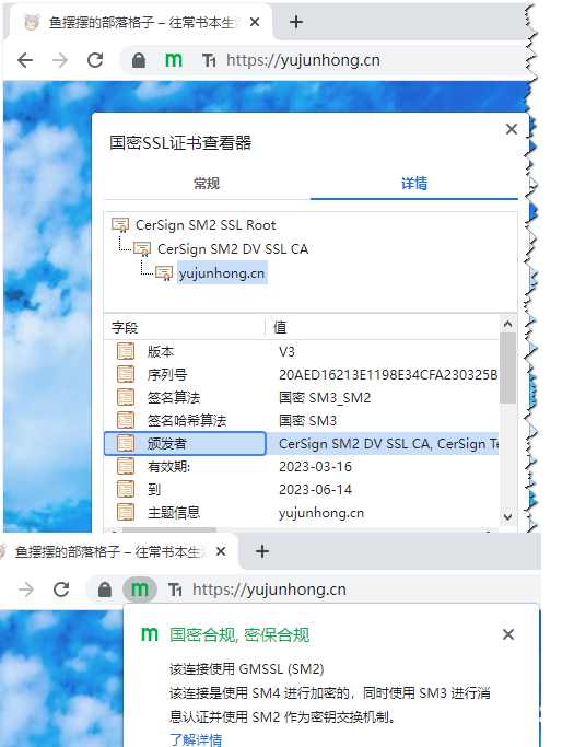 国密 SM2 算法的 SSL证书虽然目前还未普遍使用,但已经有多款浏览器开始支持国产加密算法 —— SM2国密算法的SSL证书,这是我国在网络安全发展发面一个重要的方面。国密即国家密码局认定的国产密码算法,即商用密码。