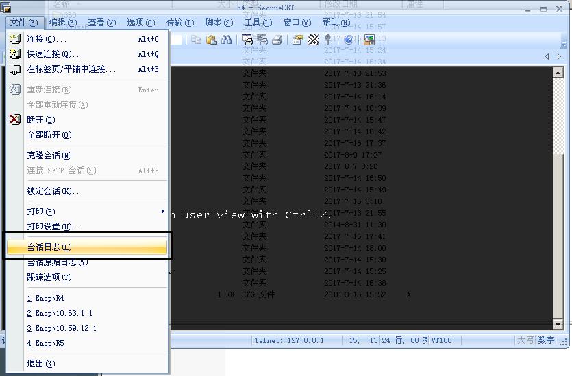 2.点击文件中的会话日志,选择您的配置需要保存到哪里