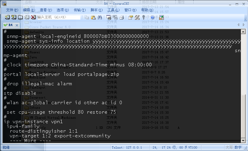 3.确定之后开始执行 [华为系列]display current-configuration,[思科系列]#show running-config
